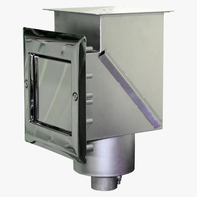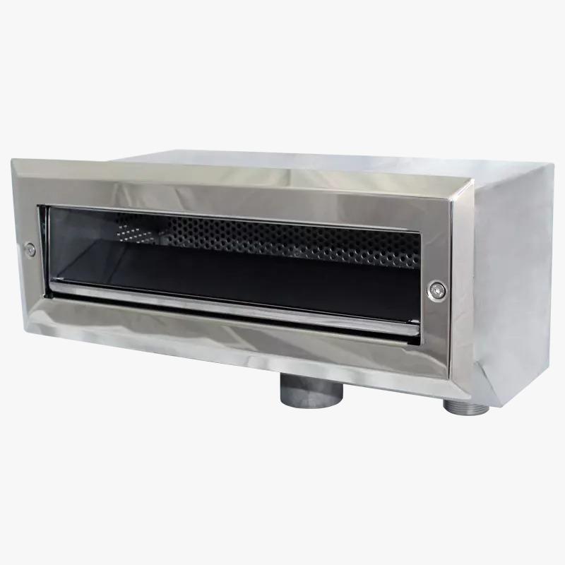 It is designed to collect floating debris (leaves, hair, insects, etc.) from the surface of the water. Several versions are available: wide-sided, narrow-sided, and with a water filler and overflow level. The front parts are polished. A coarse filter is included. We can also manufacture the skimmer in AISI316L steel.