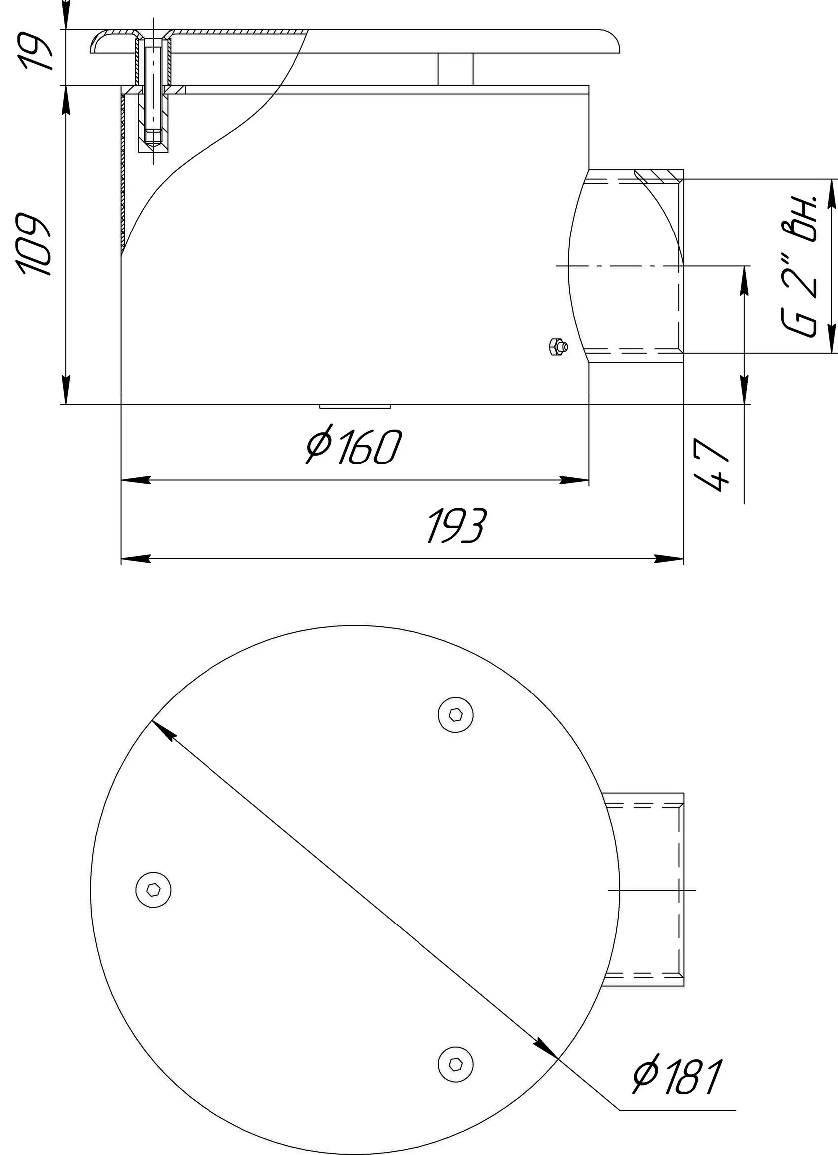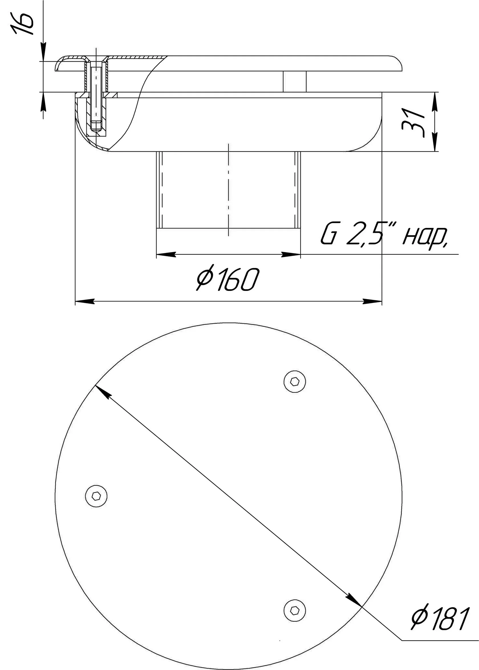 Round bottom drain Ø160x100 2″ with anti-vortex cover (Tile)
